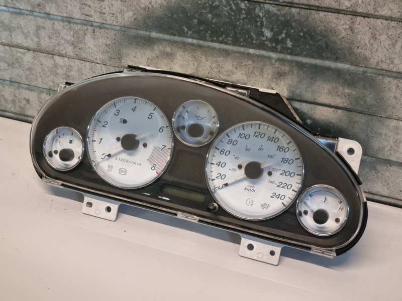 Tellerbak km-teller met witte wijzerplaten gebruikt voor een Mazda MX-5 NB/NBFL